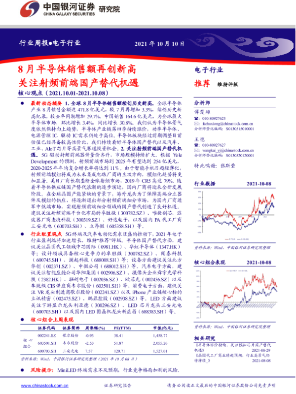 【银河证券】【20211010】20211010-中国银河-电子行业周报:8月半导体销售额再创新高 关注射频前端国产替代机遇-23页