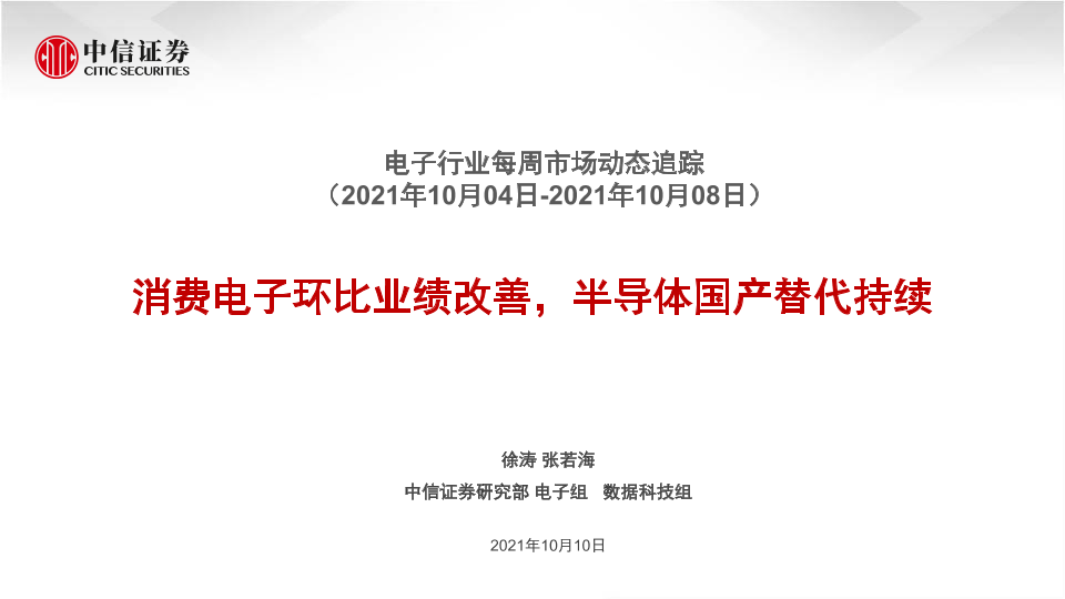 【中信证券】【20211010】电子行业每周市场动态追踪:消费电子环比业绩改善,半导体国产替代持续-21页