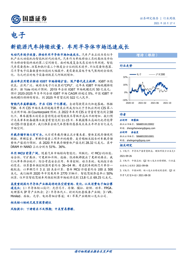 【国盛证券】【20211017】20211017-国盛证券-电子行业周报:新能源汽车持续放量,车用半导体市场迅速成长-26页