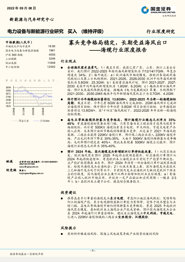 【国金证券】【20220908】海缆行业深度报告:寡头竞争格局稳定,长期受益海风出口-24页