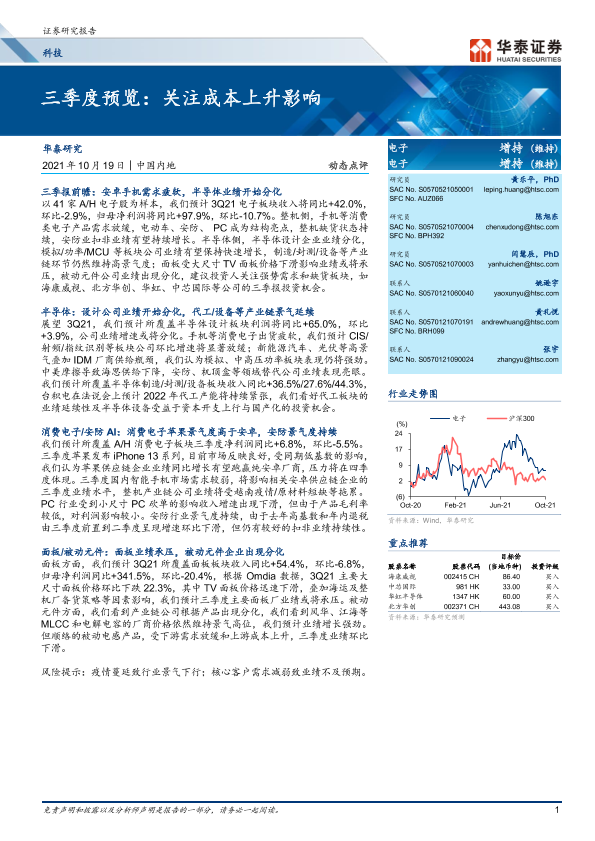 【华泰证券】【20211019】20211019-华泰证券-科技动态点评:三季度预览:关注成本上升影响-8页
