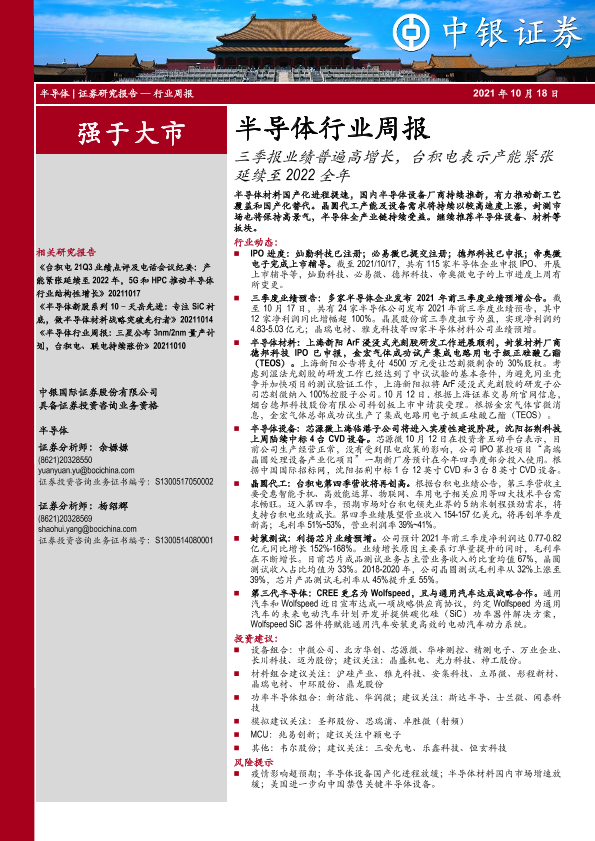 【中银证券】【20211018】20211018-中银证券-半导体行业周报:三季报业绩普遍高增长,台积电表示产能紧张延续至2022全年-21页