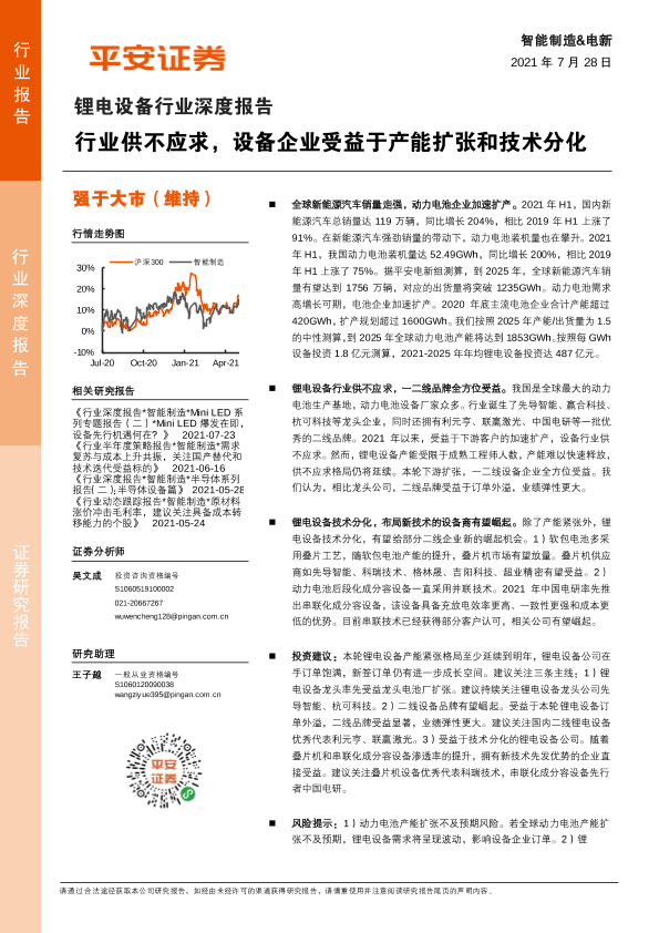 【平安证券】【20210728】锂电设备行业深度报告:行业供不应求,设备企业受益于产能扩张和技术分化-16页