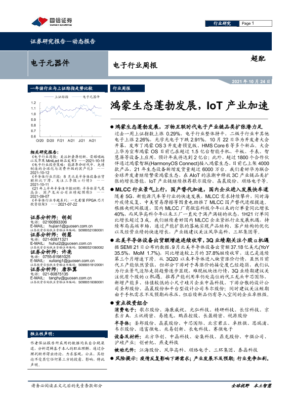 【国信证券】【20211024】电子行业周报:鸿蒙生态蓬勃发展,IoT产业加速-9页