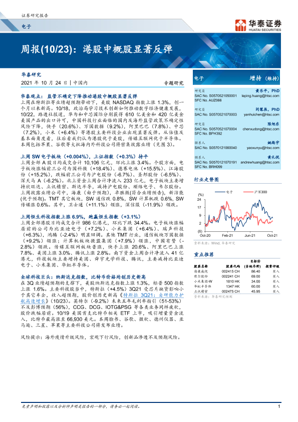 【华泰证券】【20211024】20211024-华泰证券-电子周报:港股中概股显著反弹-16页