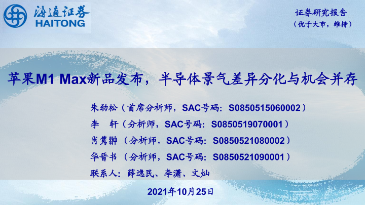 【海通证券】【20211025】电子行业周报:苹果M1 Max新品发布,半导体景气差异分化与机会并存-11页