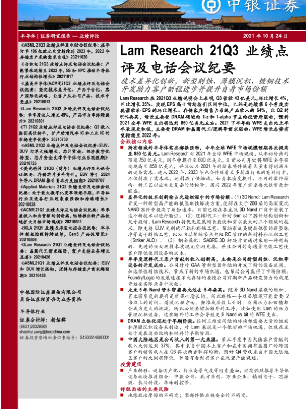 【中银证券】【20211024】Lam Research 21Q3业绩点评及电话会议纪要-12页