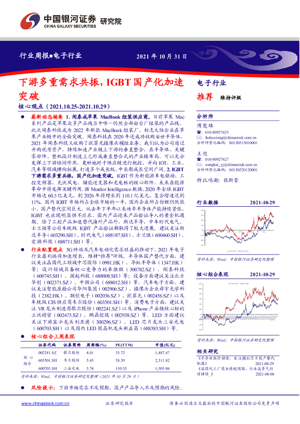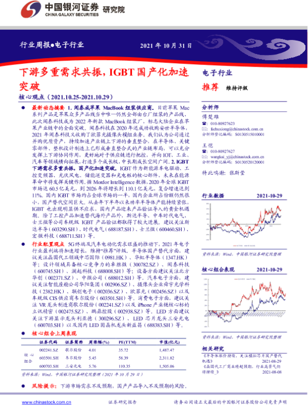 【银河证券】【20211031】电子行业:下游多重需求共振,IGBT国产化加速突破-38页