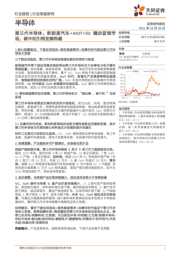 【天风证券】【20211026】第三代半导体:新能源汽车+AIOT+5G撬动蓝海市场,碳中和引领发展热潮-80页