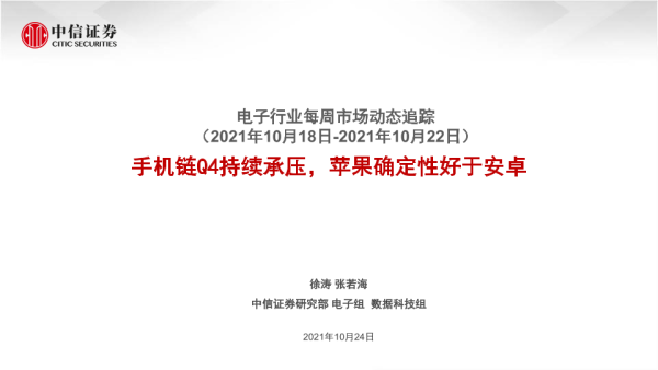 【中信证券】【20211024】电子行业每周市场动态追踪:手机链Q4持续承压,苹果确定性好于安卓-22页
