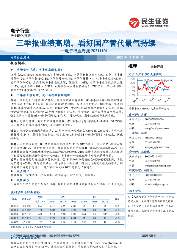 【民生证券】【20211101】电子行业周报:三季报业绩高增,看好国产替代景气持续-26页