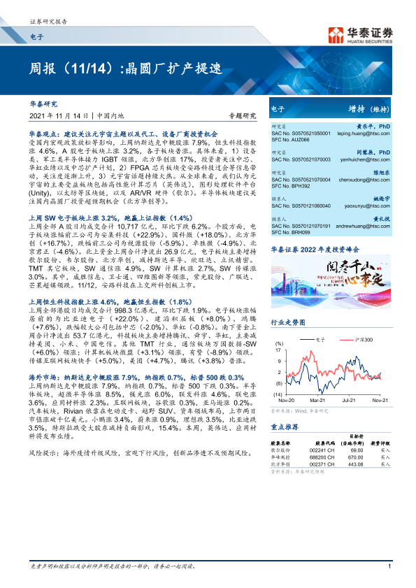 【华泰证券】【20211114】电子周报:晶圆厂扩产提速-16页