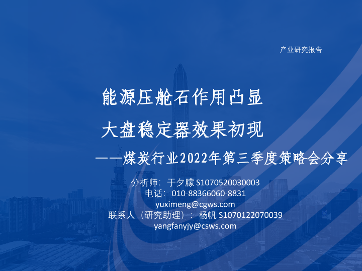 【长城证券】【20220908】煤炭行业2022年第三季度策略会分享:能源压舱石作用凸显,大盘稳定器效果初现-43页