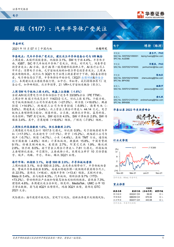 【华泰证券】【20211107】电子周报:汽车半导体广受关注-16页