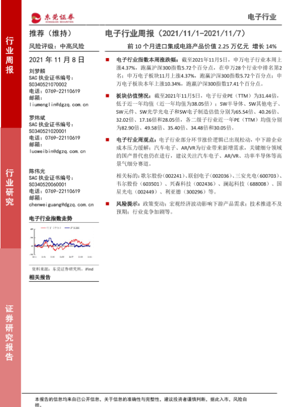 【东莞证券】【20211108】电子行业周报:前10个月进口集成电路产品价值2.25万亿元增长14%-13页