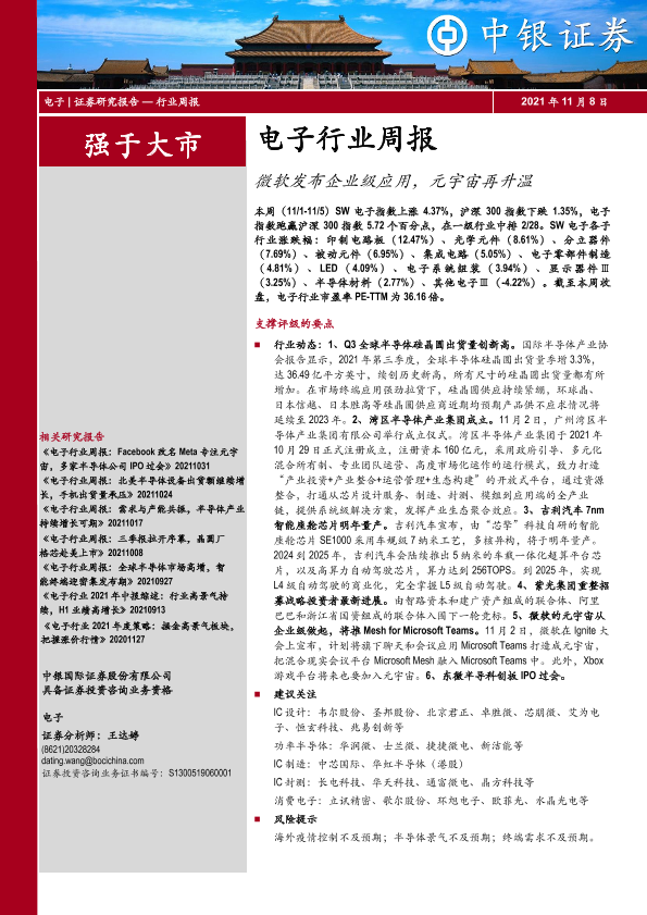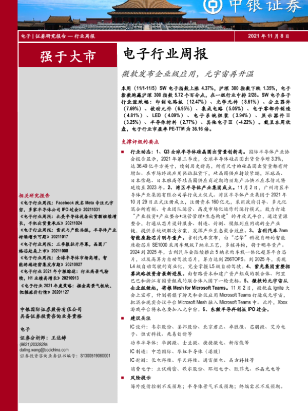 【中银证券】【20211108】20211108-中银证券-电子行业周报:微软发布企业级应用,元宇宙再升温-12页