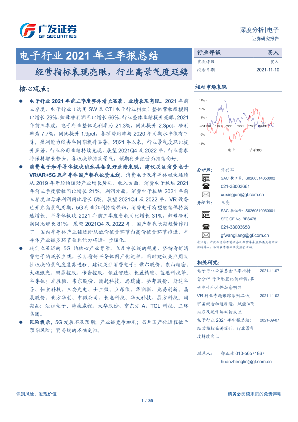 【广发证券】【20211110】电子行业2021年三季报总结:经营指标表现亮眼,行业高景气度延续-35页