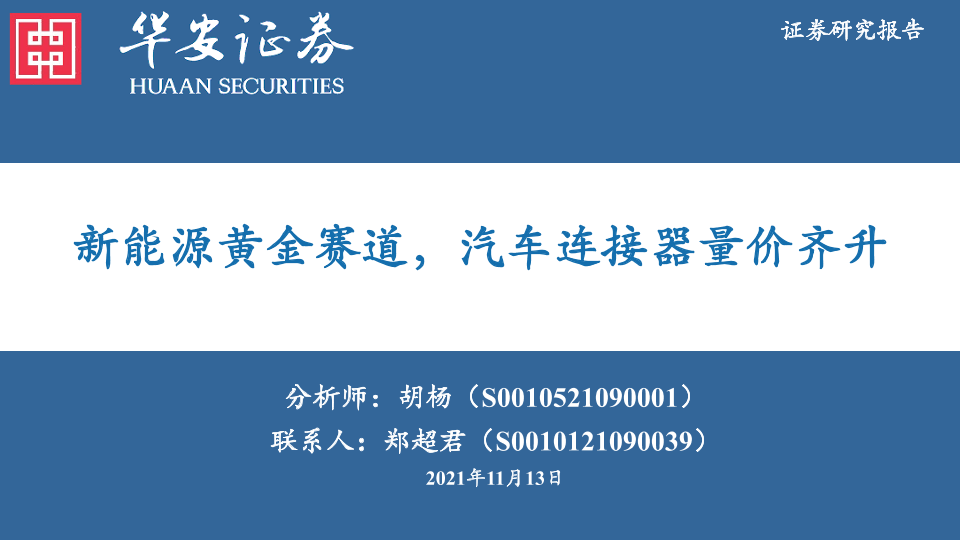 【华安证券】【20211113】新能源黄金赛道,汽车连接器量价齐升-34页