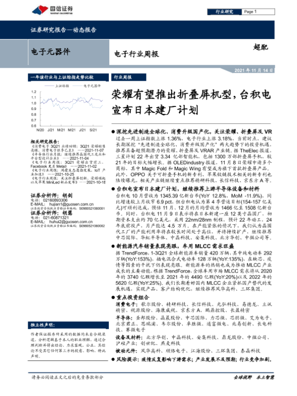 【国信证券】【20211114】电子行业周报:荣耀有望推出折叠屏机型,台积电宣布日本建厂计划-10页