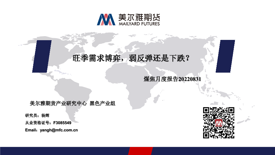 【美尔雅期货】【20220831】煤焦月度报告:旺季需求博弈,弱反弹还是下跌?-25页