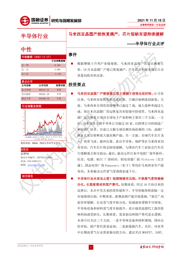 【国融证券】【20211118】20211118-国融证券-半导体行业点评:马来西亚晶圆产能恢复满产,芯片短缺有望持续缓解-3页