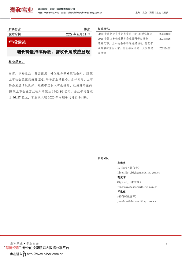 【嘉和家业(上海)信息技术有限公司】【20220414】物业行业年报综述:增长势能持续释放,营收长尾效应显现-11页