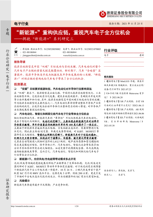 【浙商证券】【20211125】电子行业:拥抱“新能源+”系列研究三-“新能源+”重构供应链,重视汽车电子全方位机会-24页