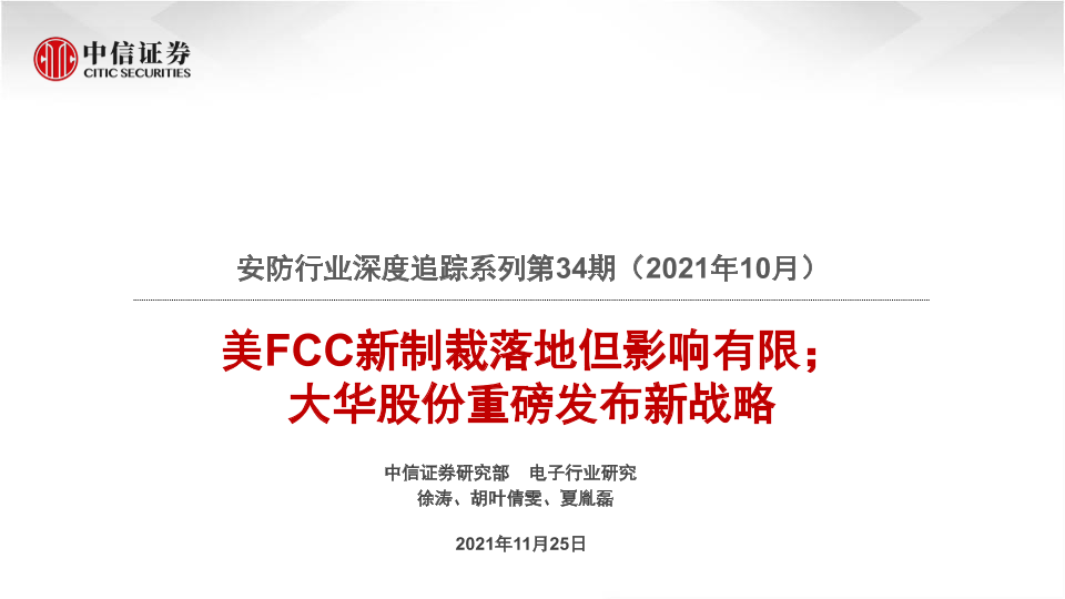 【中信证券】【20211125】安防行业深度追踪系列第34期(2021年10月):美FCC新制裁落地但影响有限;大华股份重磅发布新战略-21页