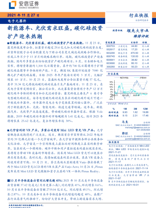 【安信证券】【20211127】电子元器件:新能源车、光伏需求旺盛,碳化硅投资扩产迎来热潮-13页