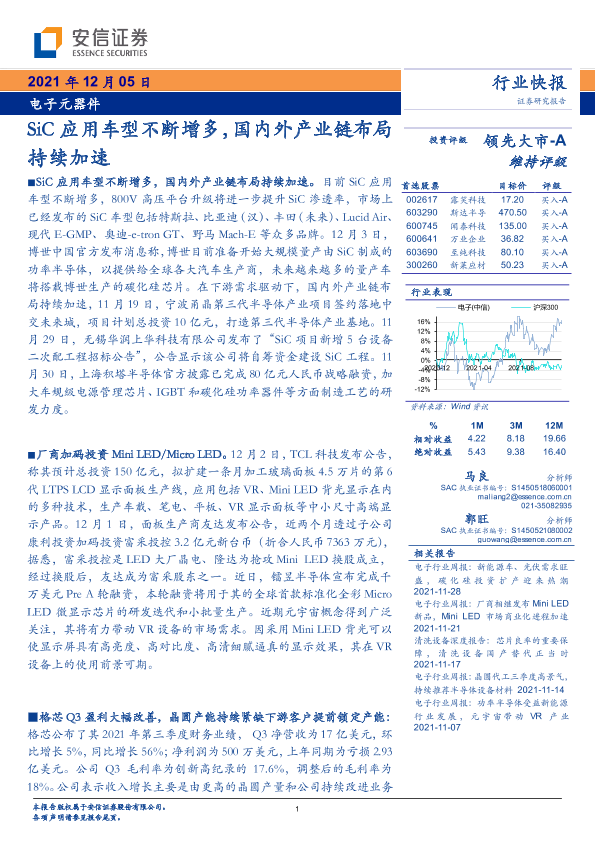 【安信证券】【20211205】电子元器件行业快报:SiC应用车型不断增多,国内外产业链布局持续加速-14页
