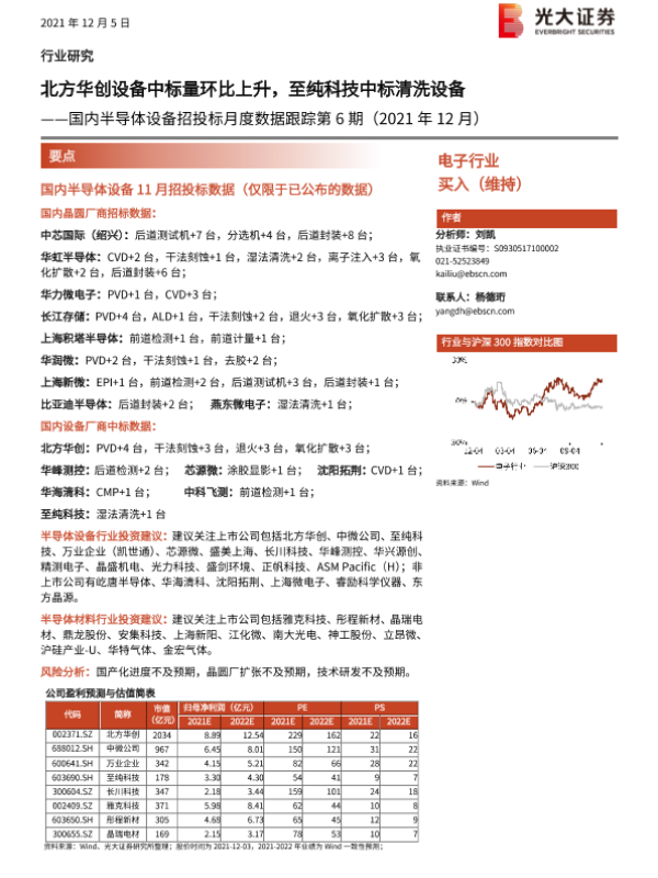 【光大证券】【20211205】国内半导体设备招投标月度数据跟踪第6期(2021年12月):北方华创设备中标量环比上升,至纯科技中标清洗设备-13页