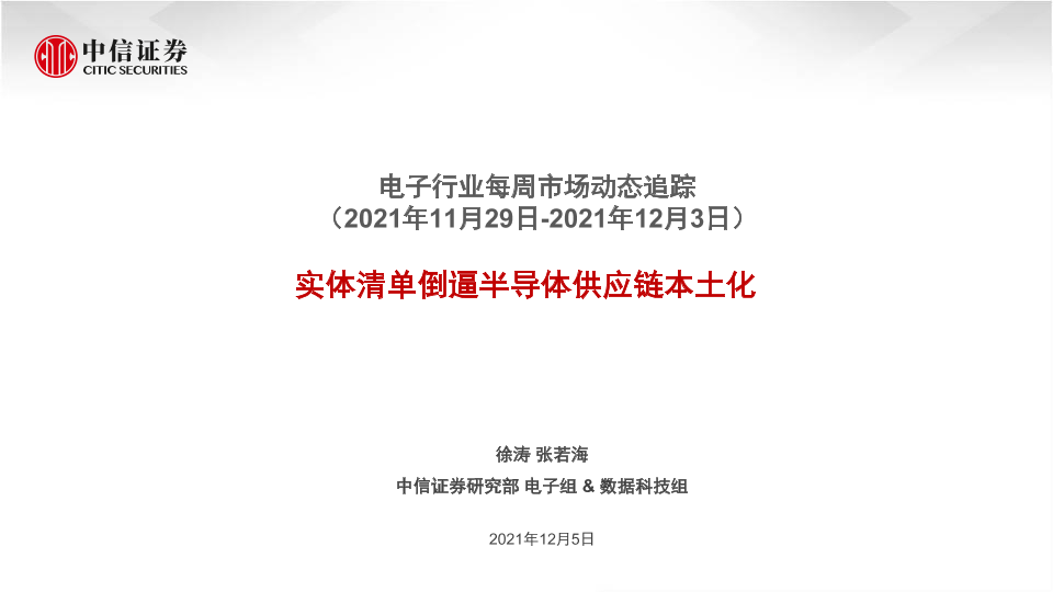 【中信证券】【20211205】电子行业每周市场动态追踪:实体清单倒逼半导体供应链本土化-22页
