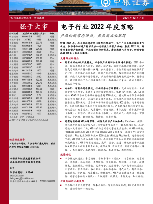 【中银证券】【20211207】电子行业2022年度策略:产业向新常态回归,聚焦高成长赛道-25页
