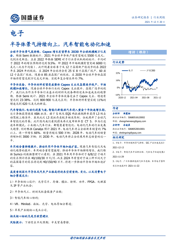 【国盛证券】【20211220】电子行业周报:半导体景气持续向上,汽车智能电动化加速-20页