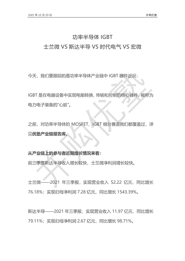 【并购优塾】【20211222】功率半导体IGBT:士兰微VS斯达半导VS时代电气VS宏微-27页