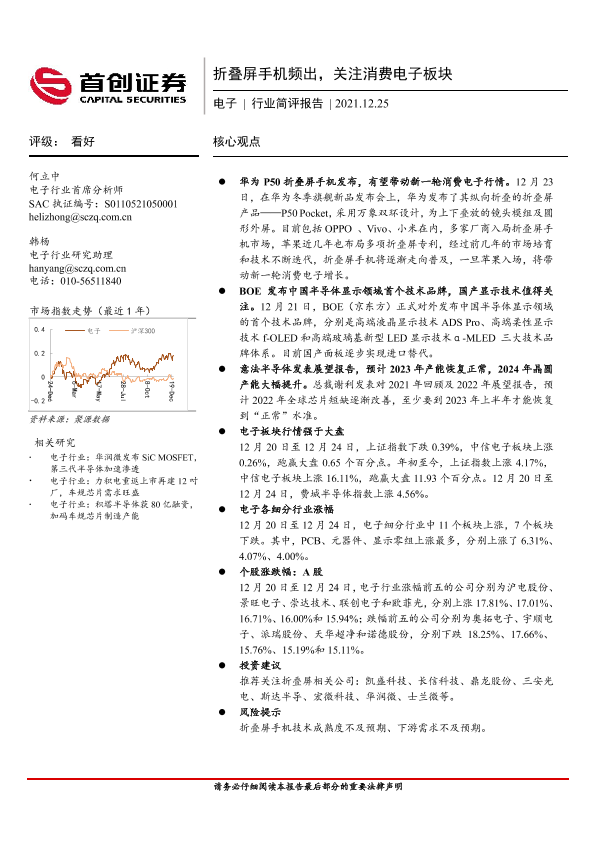 【首创证券】【20211225】20211225-首创证券-电子行业简评报告:折叠屏手机频出,关注消费电子板块-11页