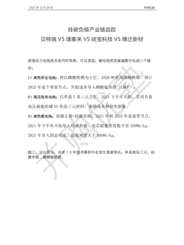 【并购优塾】【20211228】硅碳负极产业链追踪:贝特瑞VS璞泰来VS硅宝科技VS博迁新材-27页