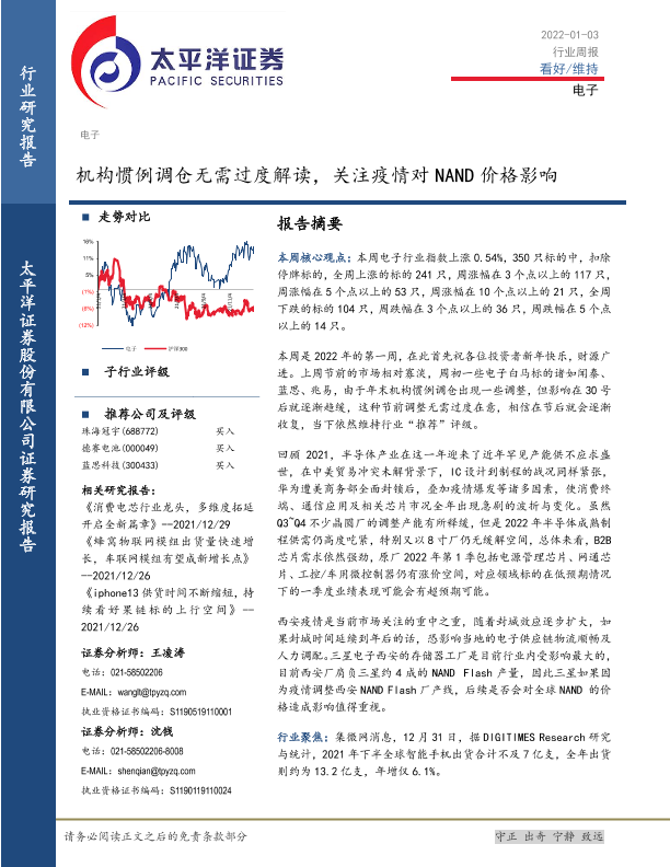 【太平洋证券】【20220103】20220103-太平洋-电子行业周报:机构惯例调仓无需过度解读,关注疫情对NAND价格影响-15页