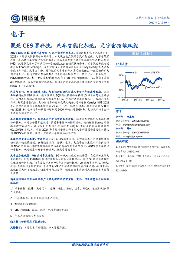 【国盛证券】【20220109】20220109-国盛证券-电子行业周报:聚焦CES黑科技,汽车智能化加速,元宇宙持续赋能-32页
