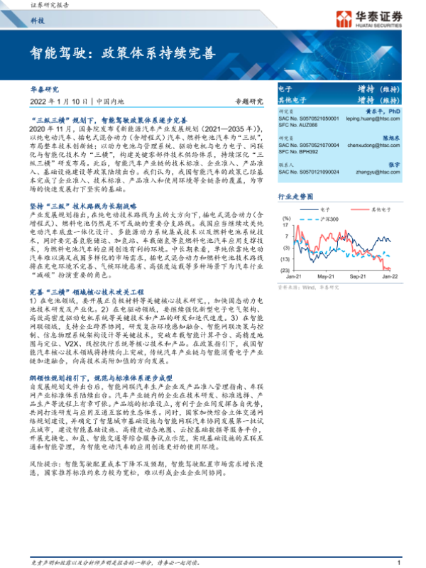 【华泰证券】【20220110】科技专题研究:智能驾驶:政策体系持续完善-5页