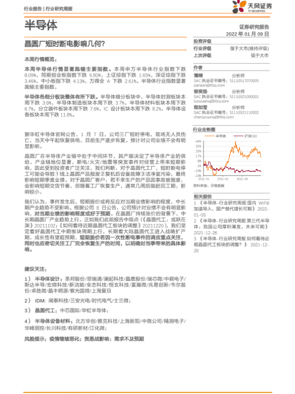 【天风证券】【20220109】半导体行业研究周报:晶圆厂短时断电影响几何?-9页