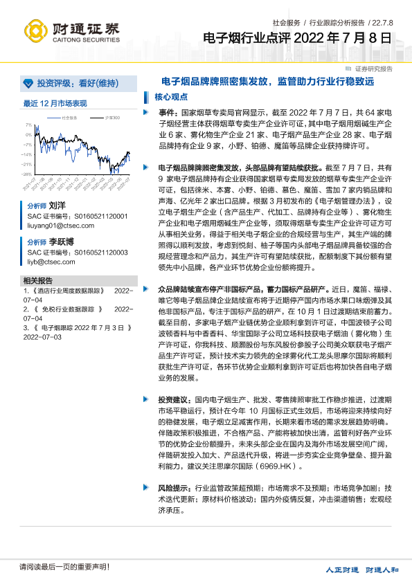 【财通证券】【20220708】电子烟行业点评:电子烟品牌牌照密集发放,监管助力行业行稳致远-3页
