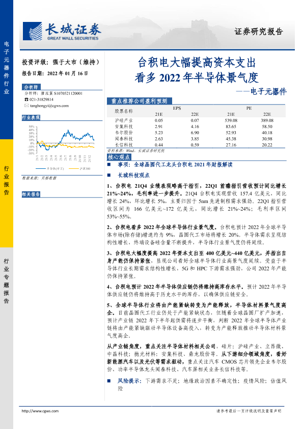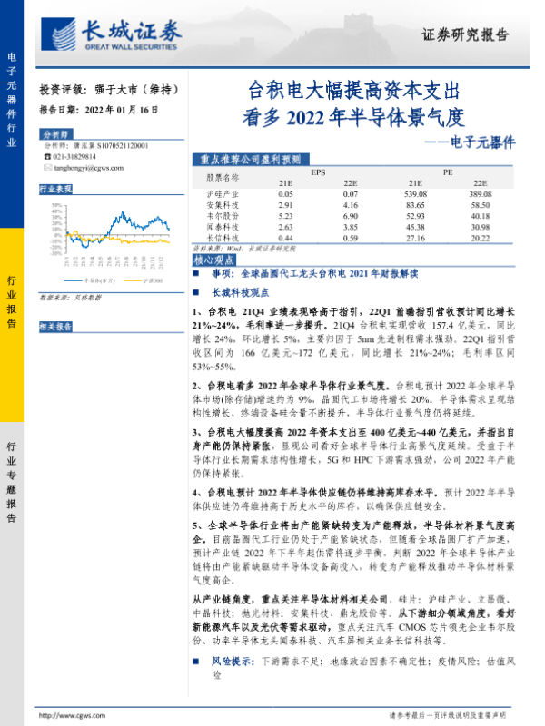 【长城证券】【20220116】电子元器件行业:台积电大幅提高资本支出看多2022年半导体景气度-10页