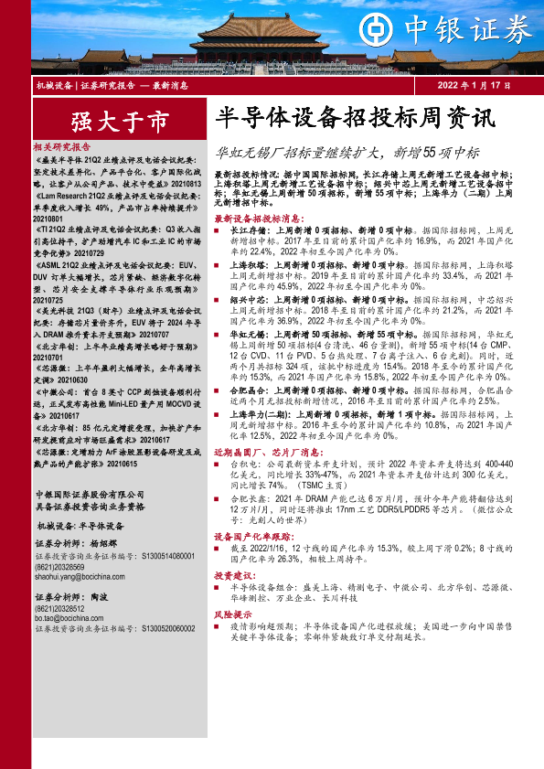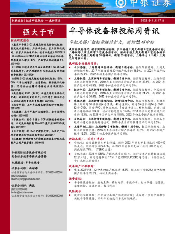 【中银证券】【20220117】20220117-中银证券-半导体设备招投标周资讯:华虹无锡厂招标量继续扩大,新增55项中标-3页