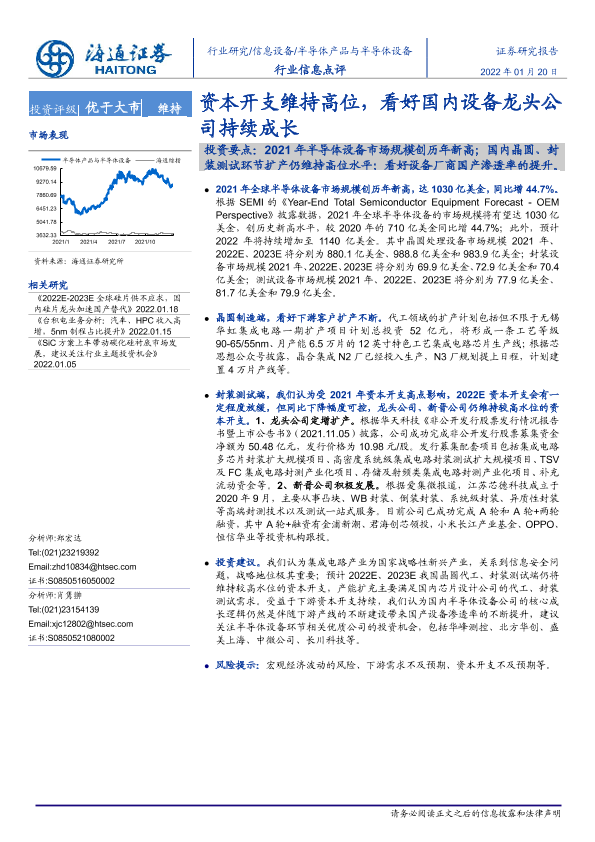 【海通证券】【20220120】20220120-海通证券-半导体产品与半导体设备行业信息点评:资本开支维持高位,看好国内设备龙头公司持续成长-2页