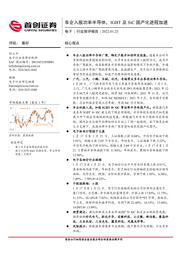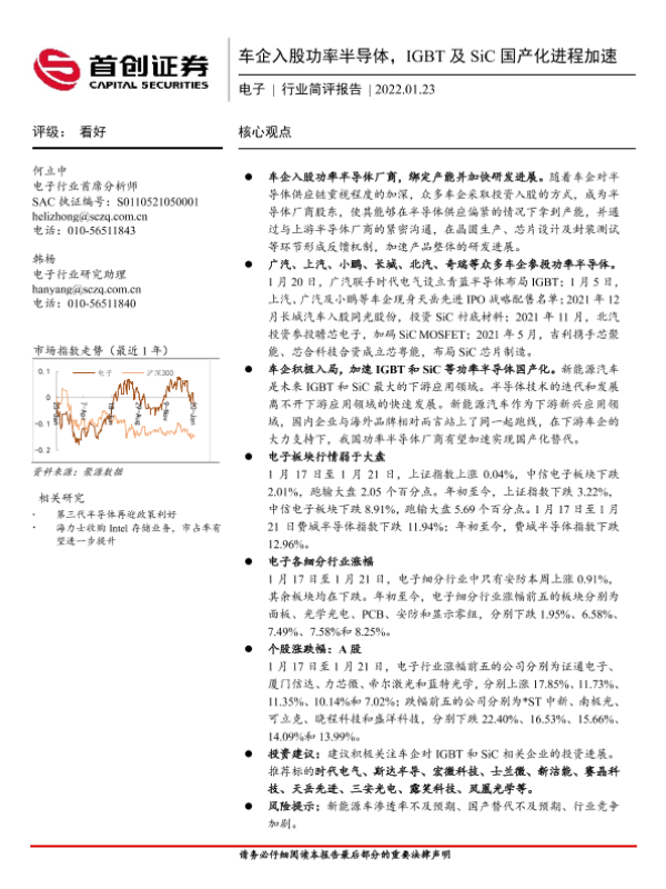 【首创证券】【20220123】车企入股功率半导体,IGBT及SiC国产化进程加速-12页