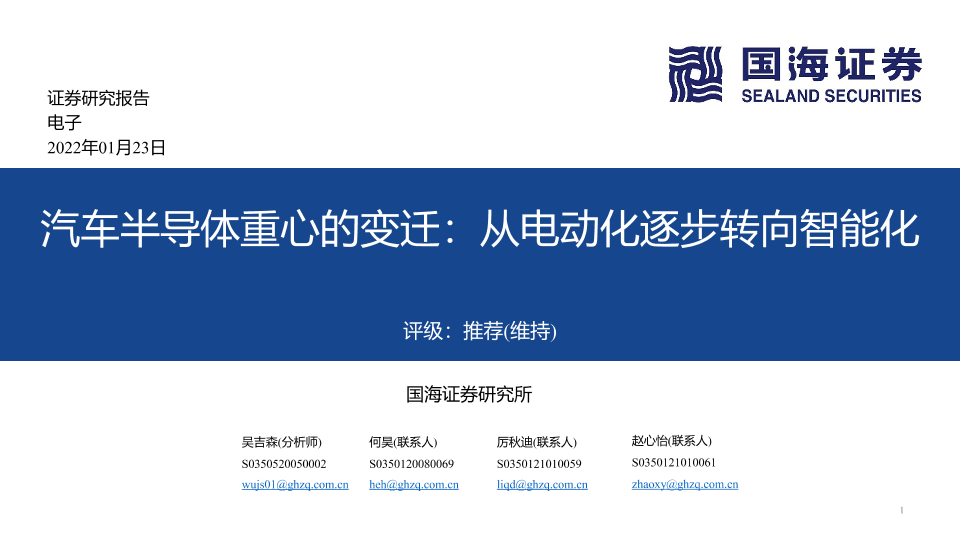【国海证券】【20220123】汽车半导体重心的变迁:从电动化逐步转向智能化-20页