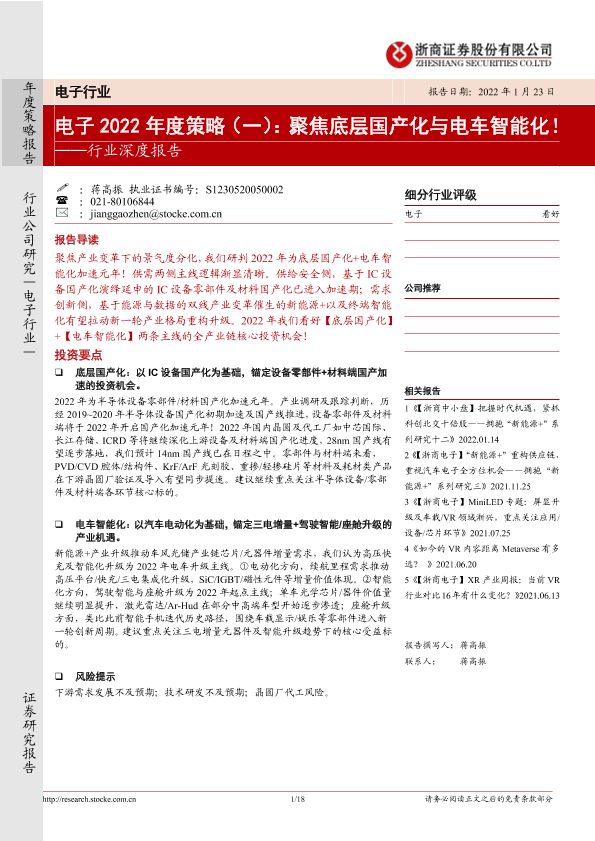 【浙商证券】【20220123】电子2022年度策略(一):聚焦底层国产化与电车智能化!-18页