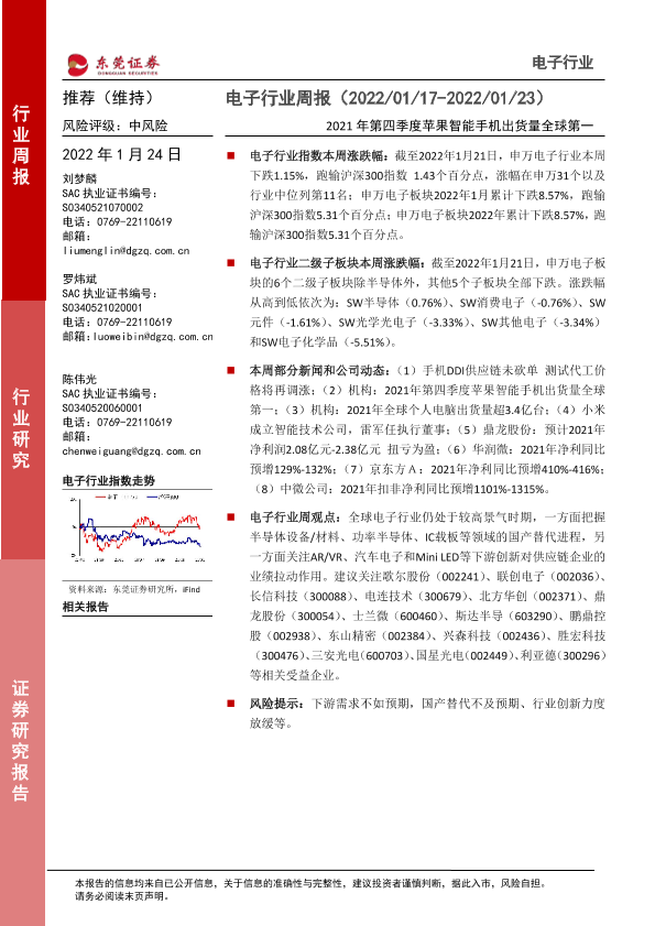 【东莞证券】【20220124】20220124-东莞证券-电子行业周报:2021年第四季度苹果智能手机出货量全球第一-12页
