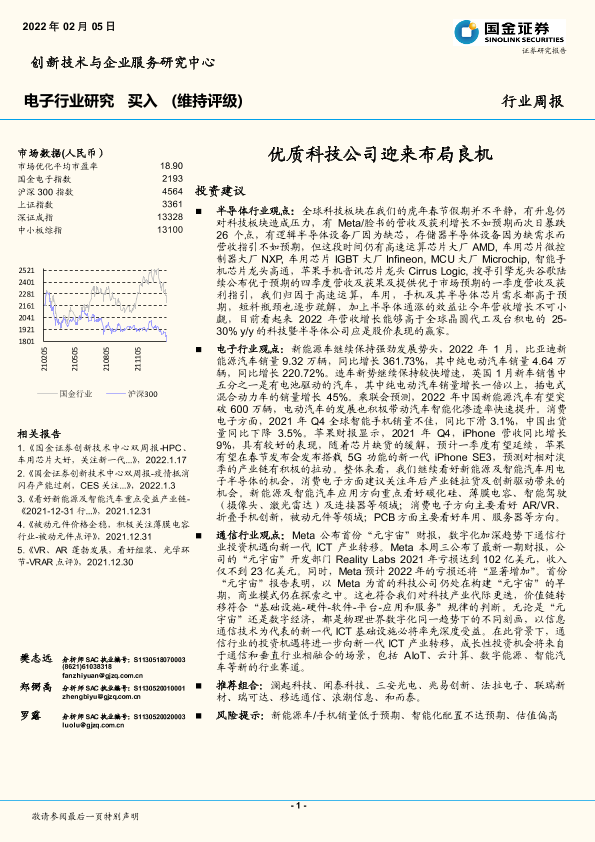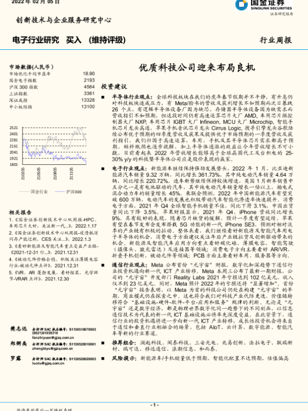 【国金证券】【20220205】电子行业周报:优质科技公司迎来布局良机-20页